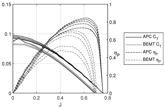 3.1. Manufacturer-Published Propeller Data and BEMT Results