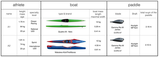 Main characteristics of the athletes, boats, and paddles used in the experiments.