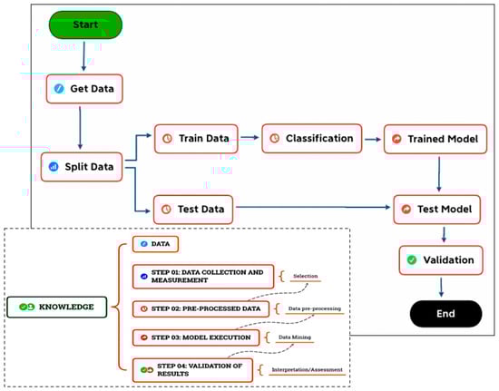 Figure 2 presents the execution flow to obtain knowledge through data and metrics collection, preprocessing, execution of the ML model, and final validation of the results.