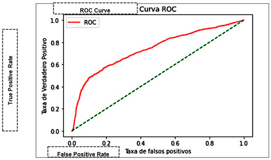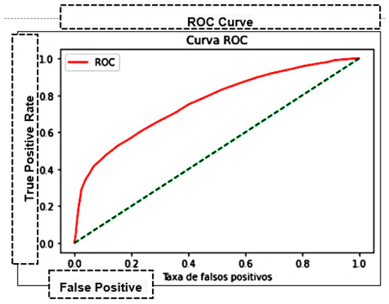 An accuracy of 75.78% was obtained using Kernel RBF, with C equal to 3 and gamma equal to auto. This was the most performative result among the other configurations of this algorithm. A substantial compromise in the algorithm’s performance is noticed when inserting new parameters in this configuration. Its precision was 76.61%, with a sensitivity of 0.91320 and 0.83318 as the harmonic mean (F1 score). The ROC curve analysis for the parameters Kernel linear, C equal to 1, and gamma equal to scale presented the best ROC score of 0.73772, as shown in Figure 8. Using these values, a patient has a 73% chance of being correctly classified using the Support Vector Machine.