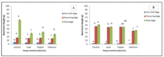 In this experimental analysis, the authors focused on two varieties of bean in Tunisia—the common bean and the faba bean, and embarked on investigating the effect of three HMs—Pb, Cu and Cd—on a range of plant-growth aspects, at different stages of plant growth. The addition of HMs to the soil had a detrimental effect on plant growth, with the RFW and SFW being lower vis-à-vis the uncontaminated control samples, in accordance with the results published in [