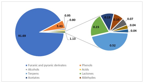 Profile of volatile compounds in balsamic vinegars determined using GC with mass spectrometric detection after solid-phase extraction. The values are presented in % (w/w); based on data from [10].