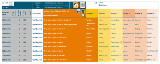 Figure 6 shows the database interface with 10 questions, which are saved at the same time, based on the above formula. The formula can also be saved and used with new text values, for example state capitals. This example involved MCQs, but the same process can be used for all of types of questions supported by FastTest PlugIn.