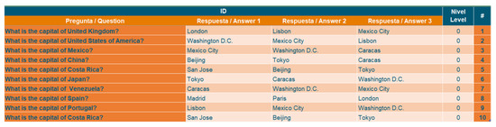 Figure 8 shows an example with questions to be used in a game. For game questions, three answers are exported: the correct answer and two incorrect answers.