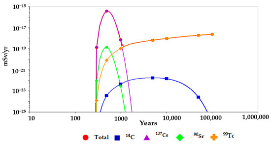 - Park, S.J.; Shin, B.S.; Ahn, S.; Lee, J.Y. Safety assessment of second-phase disposal facility in Gyeongju low- and intermediate-level radioactive waste (LILW) repository using RESRAD-OFFSITE code. J. Nucl. Sci. Technol. 2021, 58, 1256–1265. [Google Scholar] [CrossRef]