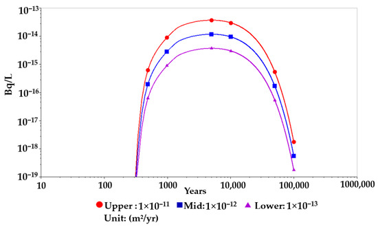 | Radionuclide | Half-Life (Years) | Distribution Coefficient (cm3/g) | Diffusion Coefficient (m2/yr) | |