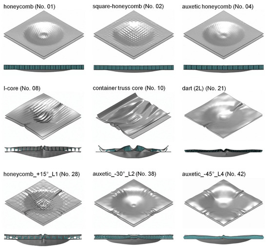 In this appendix, supplementary results from the numerical investigations for the selected core variants are listed. The simulation results provide a good overview of the characteristic deformation states of the various core topologies.