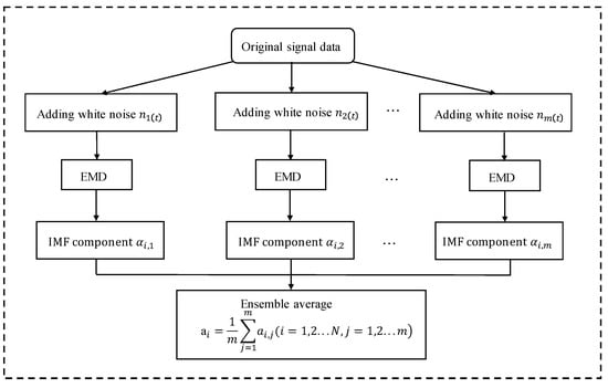 EEMD (ensemble empirical mode decomposition) is one of the most common EMD improved methods, and its advantage is that it can solve the modal blending phenomenon in EMD methods. The mode overlap phenomenon (i.e., the signals of different modes are mixed), generally has two cases: one is that the signals of different feature scales appear in one IMF component; the other is that the signals of the same feature scale are dispersed into different IMF components. The article’s detailed methodology of the EMD method can be found in [23].