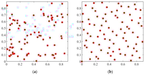 Spatial distribution of two methods. (a) Spatial distribution of pseudo-random sequences. (b) Spatial distribution of Sobol sequences.
