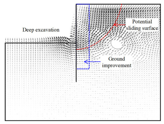 Influenced zones of deep excavation on adjacent tunnel displacement after ground improvement.
