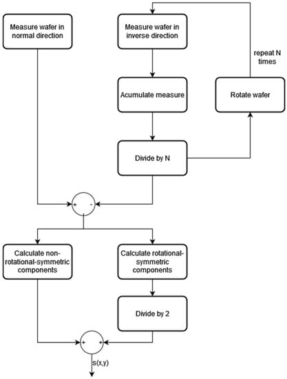 It is also assumed that the gravity effect is identical regardless of whether the wafer is in normal or inverse orientation; the inverse orientation measurement is denoted . It must be noted that, to measure the wafer in its inverse orientation, it must be flipped around an axis. Here, it is assumed that the flipping is carried out around the y-axis, giving formally [7]