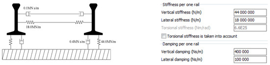 - Andersson, C.; Abrahamsson, T. Simulation of interaction between a train in general motion and a track. Veh. Syst. Dyn. 2002, 38, 433–455. [Google Scholar] [CrossRef]