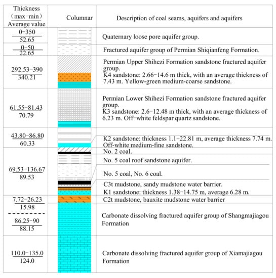 3/h. There are several aquifer groups in the upper part of the No. 2 coal seam, and the positional relationship among the main coal seam, aquifer, and water-resisting layer is shown in