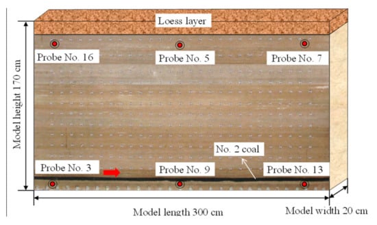 Microseismic monitoring is widely used as a means to better monitor overlying strata failures and energy evolution under the influence of mining in the working face. It is useful for the accurate identification of rock fracture signals in the advancing of the working face, and monitoring of the temporal and spatial distributions of overlying strata fractures and the change in energy released. For this reason, microseismic equipment was arranged for the physical simulation experiment to monitor the whole mining process. The equipment included a new generation microseismic monitor (SOS microseismic monitor) designed and manufactured by the Institute of Mining Seismology, Polish Institute of Mining Research. The SOS microseismic monitoring system adopts a 0.1–600 Hz vibration velocity type mine seismic measuring probe with an embedded signal transmission module, and the sensor sensitivity was 50–15,000 mas/m; The maximum sampling frequency was 2500 Hz.