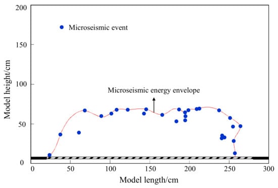 To study the specific location of cracks in overlying rock structures, the microseismic events of cracks in the physical model are summarized. The microseismic energy envelope is drawn as shown in