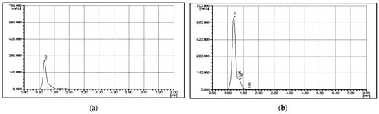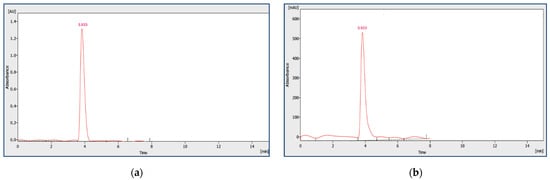 (a) HPLC chromatogram of HMF standard; (b) HPLC chromatogram of HMF content of the biscuit sample (BSC2-U) which showed the highest level of HMF.