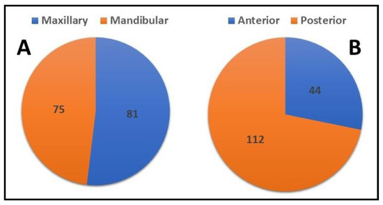 Generally, the errors were mostly associated with posterior teeth compared to anterior teeth (71.8%), with a slightly higher number in maxillary than mandibular teeth. This was consistent with several studies that expressed that the posterior teeth were more associated with accidents during RCT [15,20,29]. However, these findings contradicted some studies that showed the mandibular molars were more frequent in recording errors comparing maxillary molars [16,30], and the studies that showed no significant differences between anterior and posterior teeth [17,32]. The maxillary molars were the teeth most associated with errors in respect of overextension of RC filling, unfilled canals, and lack of coronal seal. The reason for the increase in the incidence of errors during treatment of posterior teeth may be attributed to the form and shape of the roots, the accessibility to the treated tooth, and students’ hand skills.