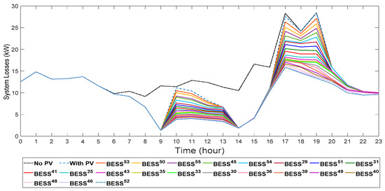 System losses with different numbers of BESS.
