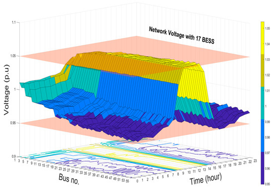 Network voltage profile with 17 BESS installed.