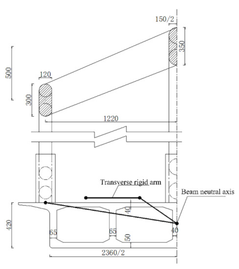 Arch bridges are considered as deck, mid-through, and through-arch bridges. When calculating the expansion force of the steel rail, the arch-assisted temperature difference of the deck arch bridge has a significant influence on the expansion force of the rail, which cannot be ignored, while the expansion force of the rail of the mid-through-arch bridge mainly depends on the expansion deformation of the main girder, and the arch bridge can be simplified in the middle of the main girder. The continuous beam with fixed support is calculated according to the ordinary bridge’s expansion force. The through-arch bridge can be simplified to the ordinary simply supported beam or continuous beam to calculate the expansion conditions. It is recommended to take 30 °C (ballastless track) or 15 °C (ballasted track) according to the temperature difference of concrete arch ribs, 25 °C (ballasted track) for steel arch ribs, and the temperature difference of cover beams, pillar piers, or booms. Take the temperature difference of the same arch rib and take the temperature difference of the beam body (15 °C) to calculate the expansion force of the rail. When calculating the bending force, the deflection condition of the deck arch bridge under half-span loading of the arch bridge is the most unfavorable. The bending force of the half-through-arch bridge is much smaller than the expansion force and can be ignored. The deflection tension of the steel rail of the through-arch bridge is small, and can also be ignored. It is recommended to arrange the load on the main span of the arch bridge, focusing on the calculation of the deflection pressure of the steel rail. When calculating the braking force, it is recommended to brake in the full span of the third-class arch bridge [54,55].