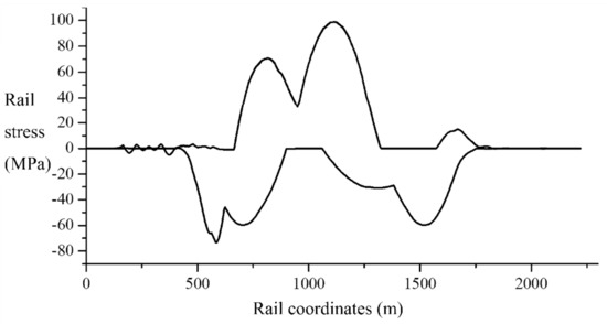 - Shi, L.; Wu, D.; Li, Q. Analysis on Stress of Track on Bridge Considering Loading History and Track-bridge Interaction. J. China Railw. Soc. 2016, 38, 105–111. [Google Scholar]