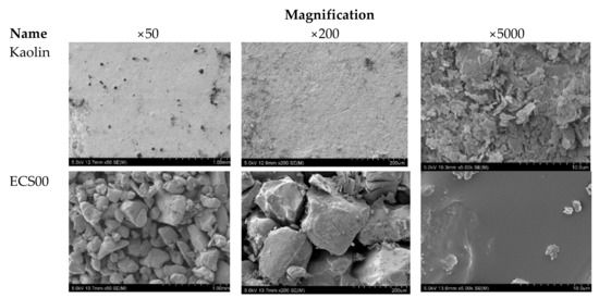 SEM micrographs of kaolinite and east coast sand (ECS00).