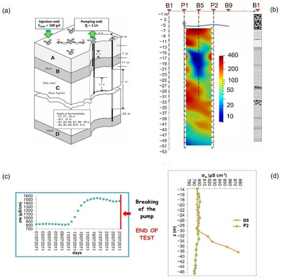- Giampaolo, V.; Rizzo, E.; Straface, S.; Chidichimo, F.; Votta, M. Hydrogeophysical methods for saline tracer test. In Proceedings of the 1st International Workshop: Methods and Technologies for Environmental Monitoring and Modelling: Landslides and Groundwater Dynamics, Potenza, Italy, 29 September–3 October 2011; pp. 159–162. [Google Scholar]