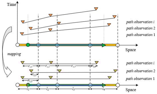 Convert the trajectory of the floating car with the covered path as shown in Figure 3, and the conversion factor is ( is the pre-calculated travel time of the road section k).