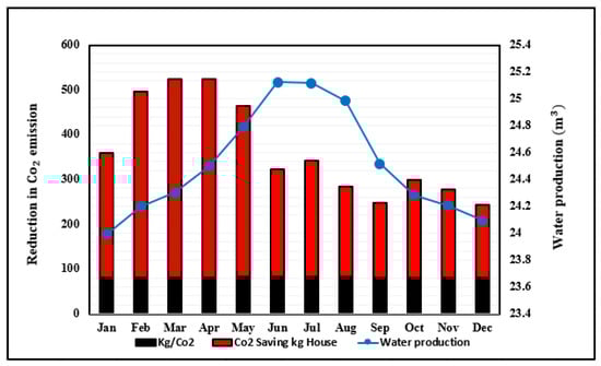 Almost all energy required in a residential building in Saudi Arabia comes from nonrenewable sources. In addition, most of desalinated water for residents in the Riyadh region is transported from Jubail and Ras Al-Khair plants [36], which are 500 km away. The environmental and energy cost for such transportation is high. It was reported by other researchers that the energy required to transport 1 m3 of desalinated water from the nearest desalination plant is 14 kWh/m3, which is equivalent to 5 kg CO2/m3 [36]. Thus, decentralized water is imperative. Figure 12 shows the results of the optimized system. The annual CO2 saving for a single residential building is 4300 kg as a result of decentralized water and energy.