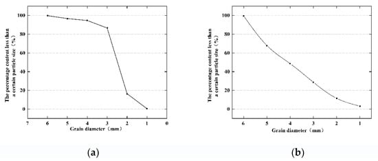 Gradation curve of sandy soil particles: (a) silty sand and (b) medium-coarse sand.