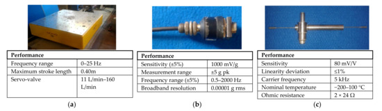 (a) Shaking table, (b) piezotronic accelerometer, (c) Linear Variable Displacement Transducer.