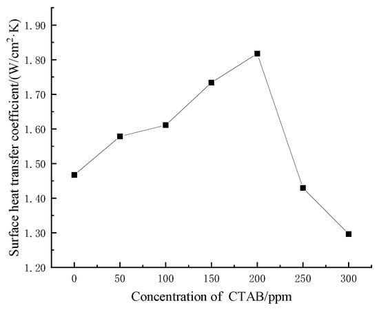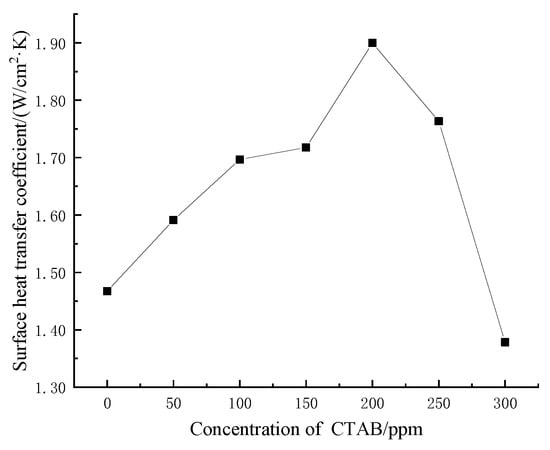 The steady-state heat transfer coefficients of the ethanol–water mixture at different CTAB concentrations.