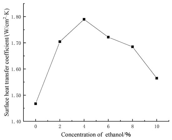 The steady-state heat transfer coefficients of spray cooling at different ethanol concentrations.
