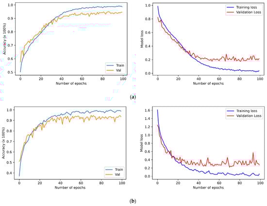 The four previously described datasets were used to run speaker-independent experiments to evaluate the proposed SER. It applied a percentage-split technique where it split the data into two sets, the first set including 80% of the data used to train the SER models, and the remaining 20% data were used to perform testing. Prior studies concluded that it is better to train the model using 70–80% of the dataset, and the remaining 30–20% should be used for testing purposes. This dataset splitting technique can help achieve improved results, and SER models prevent overestimating and overlapping results. Figure 2 presents the performance of the proposed transformer model applied to the datasets as mentioned above, using a feature set of 273 to train the model. The table provides information about the accuracy of the proposed model applied to selected datasets.
