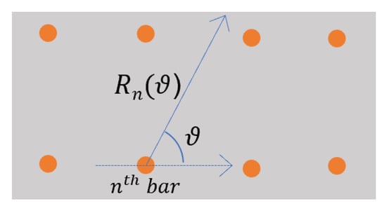 In (14), the dependence on the integration variable stands in , i.e., the distance between the center of the n-th bar and the point on the dielectric/air interface along the direction, as shown in Figure 2.