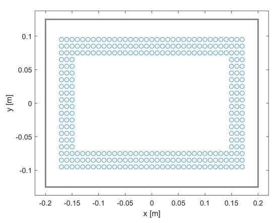 Candidate (blue circles) bar positions inside the dielectric rectangle (grey line). Bars are numbered from bottom left to top right.
