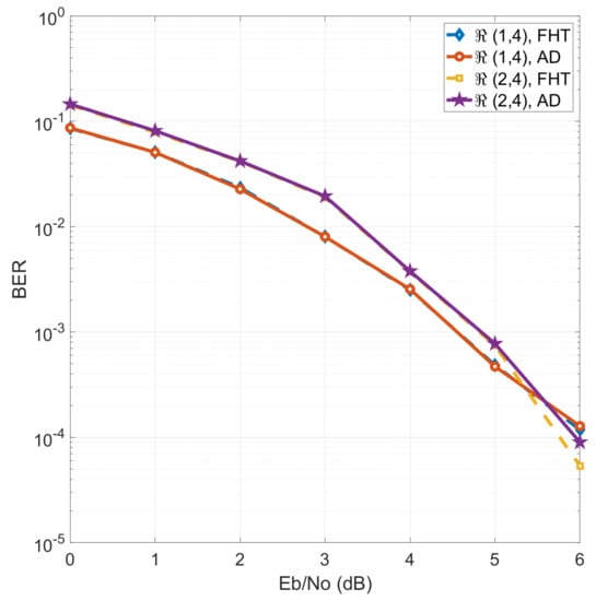 BER of RM decoding with FHT and AD.