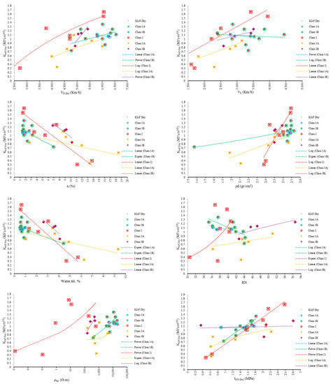 | Empirical Relation | Rock Type | R2 (%) | Units | Reference |