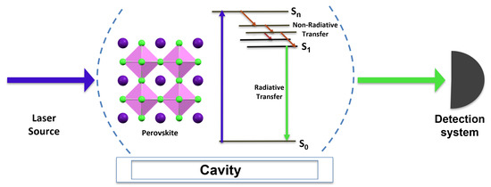 Subsequently, 10 microliters of the perovskite solution (dissolved in toluen) were transferred into polymer solution (polystyrene(PS), volume 2 mL) used for spin coating in order to place the nanoprobe inside a cavity. The thickness of the cavity was adjusted to achieve resonance ( close to zero, where represents the Bohr frequency of the fluorophores in free space).