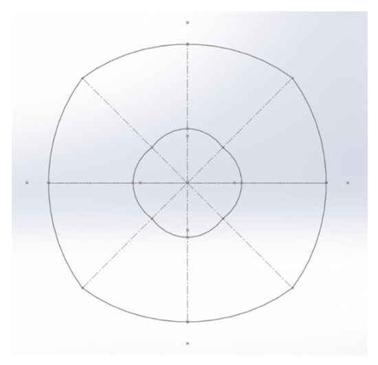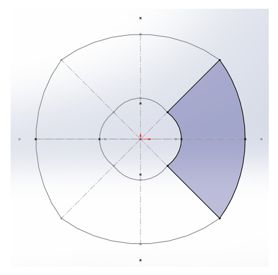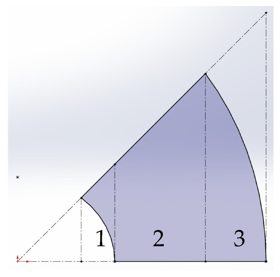 Considering the symmetries of the cross section, the determination of the area of the cross section for the reachable workspace, as shown in Figure 7, was implemented by using the formula for the area of an ellipse sector.