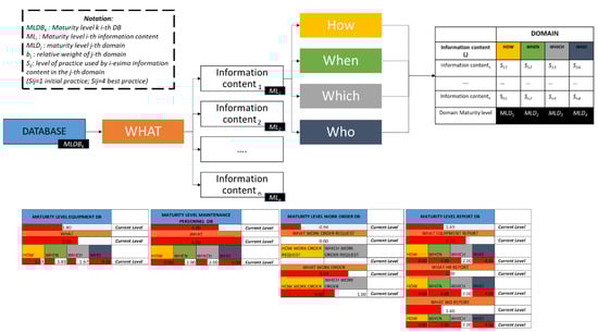 However, the model developed, to date, covers four DBs: the equipment, maintenance personnel, maintenance work order and maintenance report; therefore, a systematic approach is used to assess the maturity level of each (Figure 4).