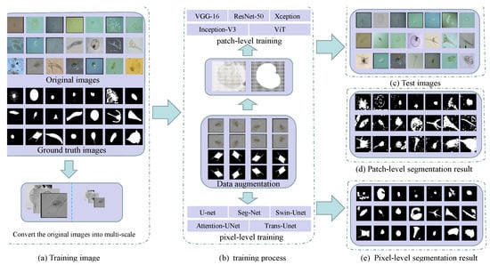 This section introduces patch-level and pixel-level segmentation experiments and the segmentation results of transparent images under several deep learning networks. The patch-level and pixel-level image segmentation workflows are shown in Figure 2.