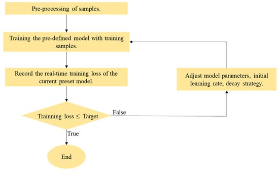 As shown in Figure 2, the first convolutional layer of ED Net is used to enhance the dimensionality of the feature map, followed by the introduction of a BN layer for data normalization to improve the convergence speed of the model. Then there is an AC Block with residual connections. It is based on the asymmetric convolution structure improvement, which enhances the extraction of feature information by the convolution operation by strengthening the content extracted at the convolution kernel skeleton. After which, there is a Double Pooling Concatenated Input SE Block (DPCI _SE Block), which is based on the SE block to obtain more global and local feature channel data. The final layer is the dimensionality reduction layer, which consists primarily of a convolutional layer with a convolutional kernel size of 1. The objective is to reduce the dimensionality of the feature map and the number of internal model parameters computed. A group of synthesized structures includes an EAC Block, a DPCI_SE Block, and a dimensionality reduction layer. After three groups of such synthesized structures, there are the fully connected layer and the SoftMax layer. The complete Flowchart of ED Net training is shown in Figure 3.