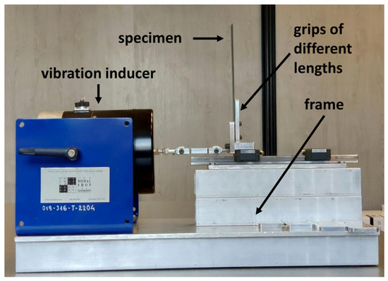 To perform experimental verification of the formula, a test stand was designed and manufactured. The test bench for the vibration examination was designed as a rail and a guide car, with an attached sample holder. The sample was mounted vertically to eliminate the influence of gravity and avoid the need to mount the rail vertically. The vibrations were forced by the inductor attached with the base to the frame shared with the rail; the vibrating head was connected with the carriage by a rod.