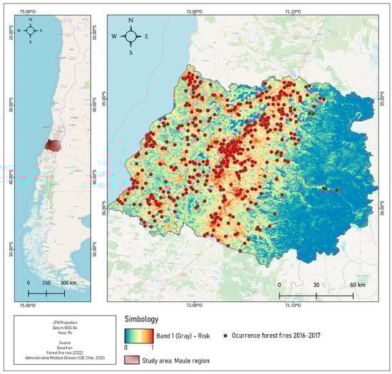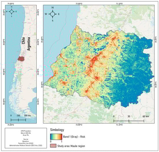 Ignition risk map in the Maule region, Chile.