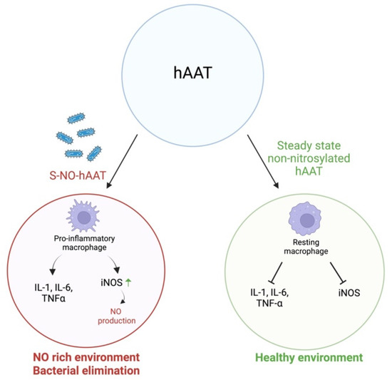 - Kaner, Z.; Engelman, R.; Schuster, R.; Rider, P.; Greenberg, D.; Av-Gay, Y.; Benhar, M.; Lewis, E.C. S-nitrosylation of α1-antitrypsin triggers macrophages toward inflammatory phenotype and enhances intra-cellular bacteria elimination. Front. Immunol. 2019, 10, 590. [Google Scholar] [CrossRef]