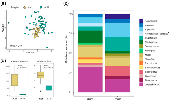 3.1. Mold vs. Dust Mycobiota by DNA Metabarcoding