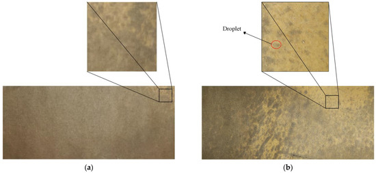 The droplet coverage rate of each piece of water-sensitive paper was measured using image processing. The water-sensitive paper changed from a light yellow to grayish when exposed to water. When the spray flow rate was 4.0 mL/s, the center coverage rate and edge coverage rate were 98.4% and 64.3%, respectively, as shown in the sample images in Figure 15. Therefore, the experimental results showed that the droplet coverage rate descended gradually from the spraying center to the outside.
