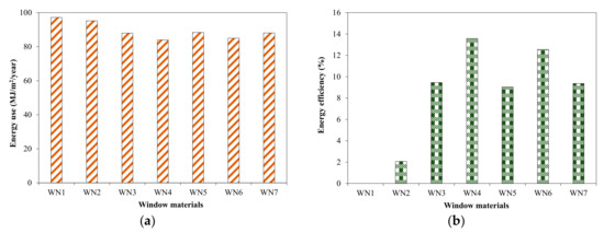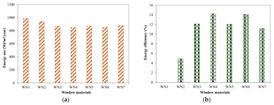 Effect of window material on energy use in tested house building. (a) Energy use; (b) Efficiency.